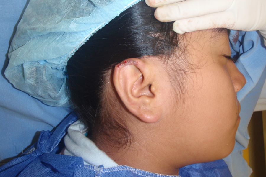 It is a minor surgery in which we perform the reconstruction of the earlobe, when this is partially or completely torn. This surgery is to repair and unite the edges again to create the outline once more.
