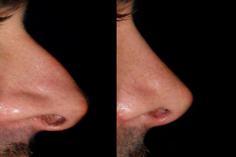 This product allows us to mold or correct nasal tips on people who have their nose slightly downwards. It can also be used to round out the tip if the nose has a split point. Applied through microinjections, matching and correcting the nasal profile is achieved . Depending on the product selected by the patient, the duration for Hyaluronic acid is 6 months and that of the calcium hydroxyapatite is of approximately 1 year.